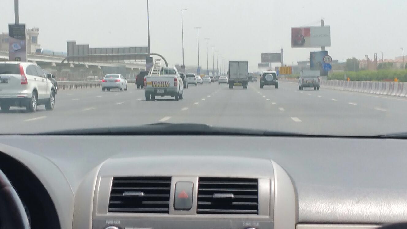 In Dubai angekommen wurde die Autobahn dann etwas großzügiger. Ganze sechs Spuren pro Richtung und das mit kaum Verkehr. Wer kann, der kann. Wie überall im nahen Osten, ist die Hupe das wichtigste am Auto. Hupen bedeutet : „Vorsicht, ich überhole“, „ich will links abbiegen (oder rechts)“ „fahr schneller du A…“ „nicht so schnell“ oder man hupt einfach mal so, um zu sehen ob die noch funktioniert.