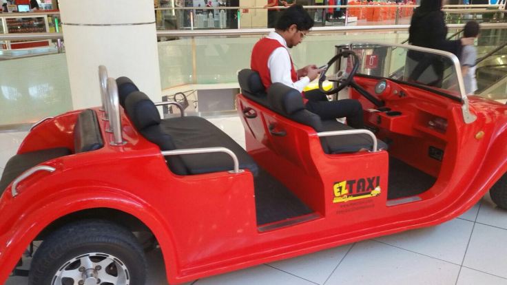 In der gut klimatisierten Dubai Mall muss man nicht von Shop zu Shop gehen, sondern kann sich chauffieren lassen. Bei über 350000 Quadratmeter Verkaufsfläche aber auch verständlich. Wir sind trotzdem gegangen. Aber der kostenpflichtige (?) Service wird tatsächlich genutzt.