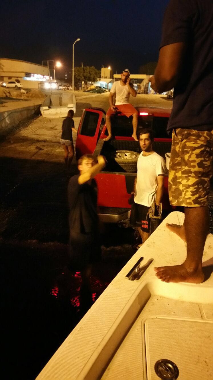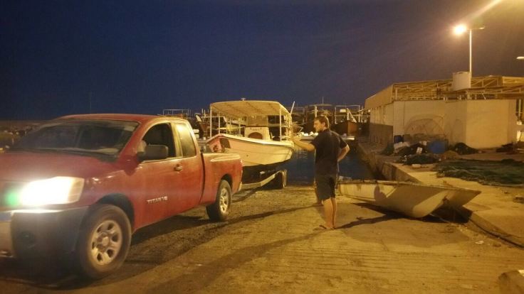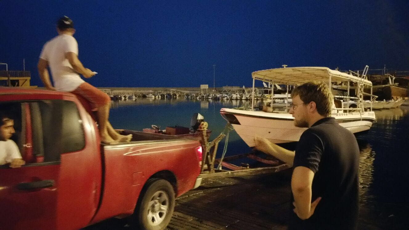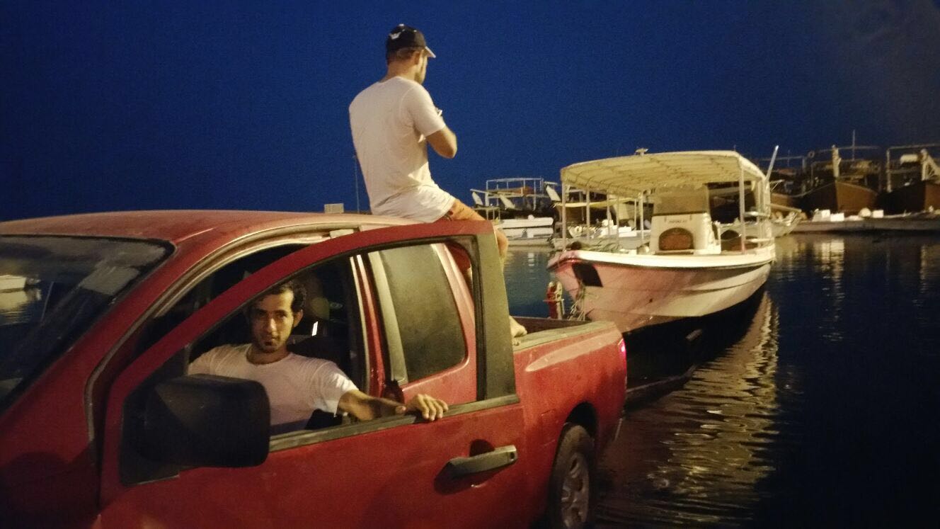 Anschließend ging es in stockfinsterer Nacht zurück zur Basis. Bianca und Hannes traten den Heimweg mit dem Truck über die Berge an, Jaleel und ich mit dem Boot über das Meer. Da leider keine Beleuchtung an Bord vorhanden ist, musste ich mit unseren Tauchlampen den Anschein machen. Denn wenn Boote nachts ohne Beleuchtung fahren, ist die Küstenwache sehr skeptisch und hält die Besatzung für Schmuggler. Aber wir hatten zum Glück keine Probleme während der 20 minütigen fahrt. Als wir angekommen waren hatten wir noch die grandiose Idee, das Boot noch zu schruppen. Obwohl wir zu diesem Zeitpunkt schon wirklich kaputt waren. Aber so msüßen wir das nicht in der sengenden Hitze am nächsten Tag machen.