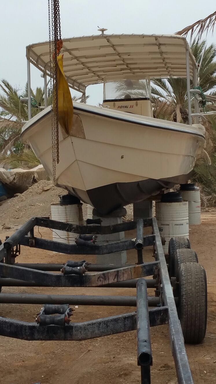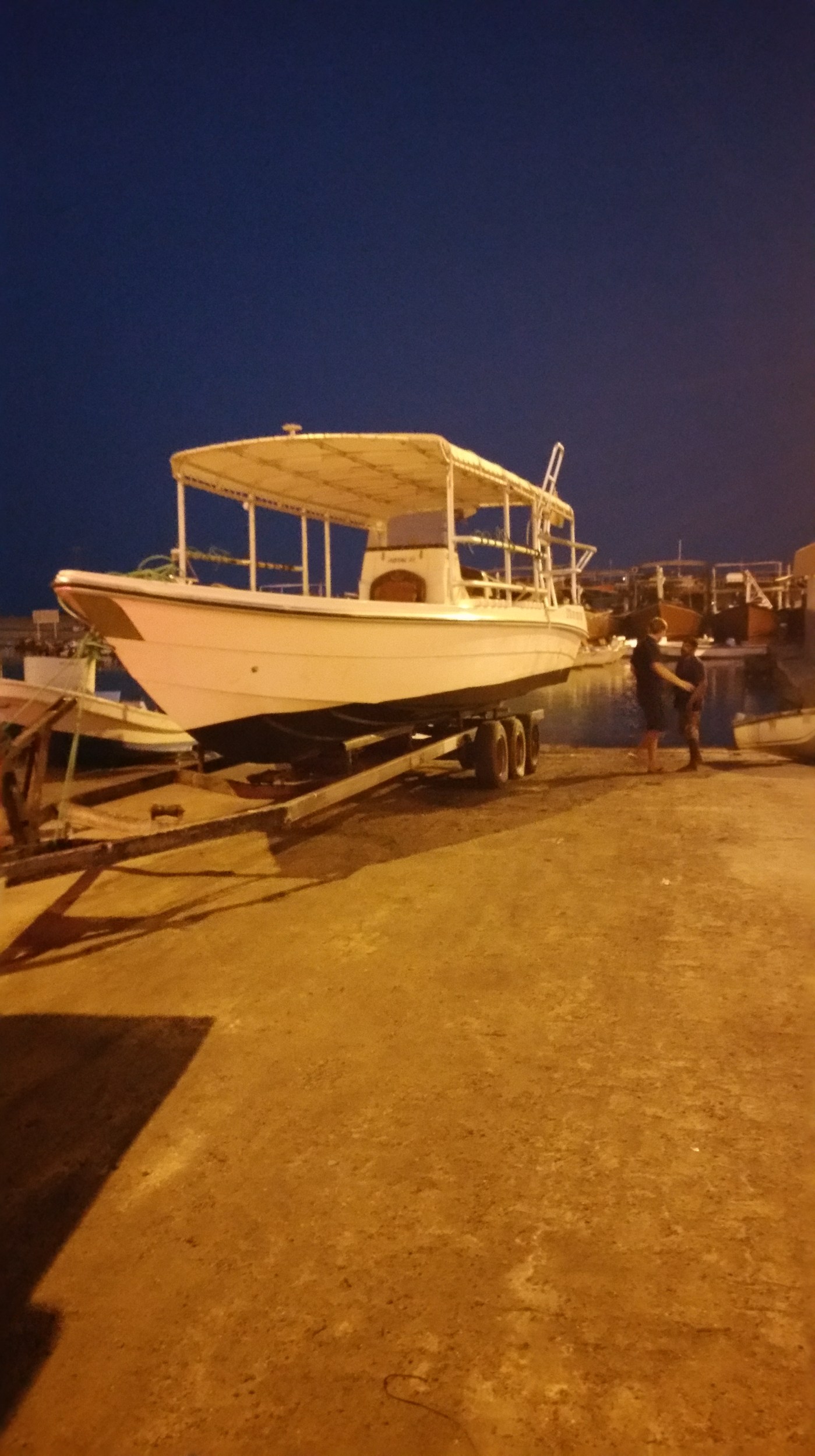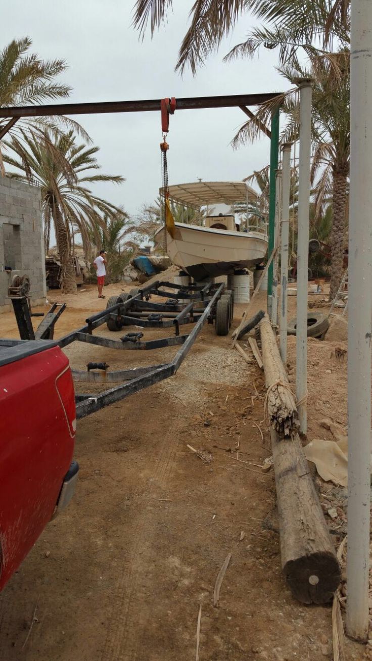 Nach langem hin und her, war dann plötzlich auf wundersame weise ein Trailer da. Dazu halfen uns noch zwei Omanis beim nicht ganz unproblematischen verladen des Bootes auf den Trailer. Aber wenn man hier eins kann, dann improvisieren und das in Weltrekordzeit.