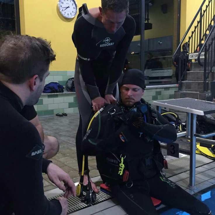 Als es dann soweit war, kam gleich (der eigentliche konsequente) Hammer, einer der Course Directors saß im Rollstuhl. Aber im Moment darauf war uns klar: nur so macht ein Kurs Sinn. Denn in der Praxis kann man es nicht Simulieren, behindert zu sein. Aber zuerst kam die Theorie. Wir hatten uns schnell geeinigt, das wir diese an einem Tag durchziehen wollten. Damit wir danach viel Praxis haben, was uns sinnvoller erschien (zu recht). In der Theorie ging es hauptsächlich um Standards in der Ausbildung sowie um die verschiedenen Arten von Behinderungen. An dieser wird dann entschieden, inwieweit der Taucher ausgebildet werden darf und worauf man zu achten hat.