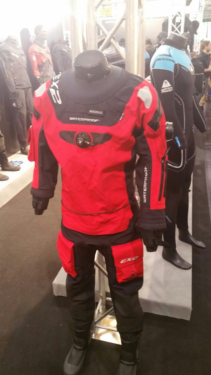 Somit ging es weiter zu Mares, nochmal Scubapro und Waterproof, ohne positives Ergebnis. Zumindest für Bianca. Ich habe mich da tatsächlich in einen neuen Trocki verliebt. Momentan trage ich ja noch den Evertec von Scubapro. Der passt mir zwar , aber er ist mir einfach zu Baggy geschnitten. Was mir in der Praxis unbequem ist. Der neue von Waterproof ist wesentlich enger geschnitten. Auch das ewige schwarz wäre dann passé.