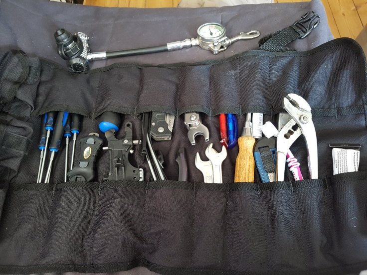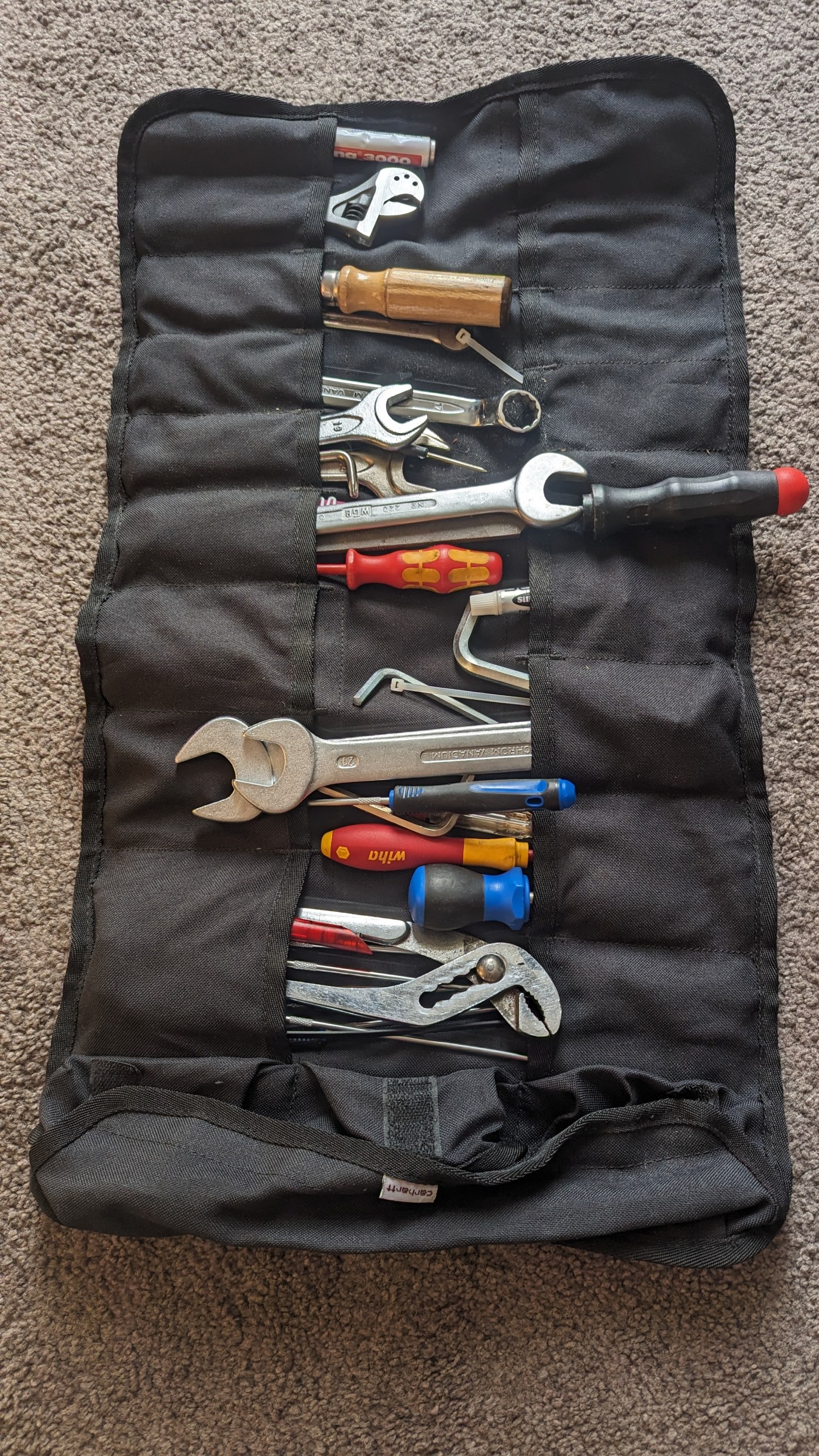 Sicherlich kann man über einiges Streiten, aber ich nehme lieber ein wenig mehr mit, als zu wenig. Ich transportiere mein ganzes Werkzeug in einer Werkzeugrolle. Damit habe ich alles schön sichtbar und muss nicht in einer Kiste rumkramen.