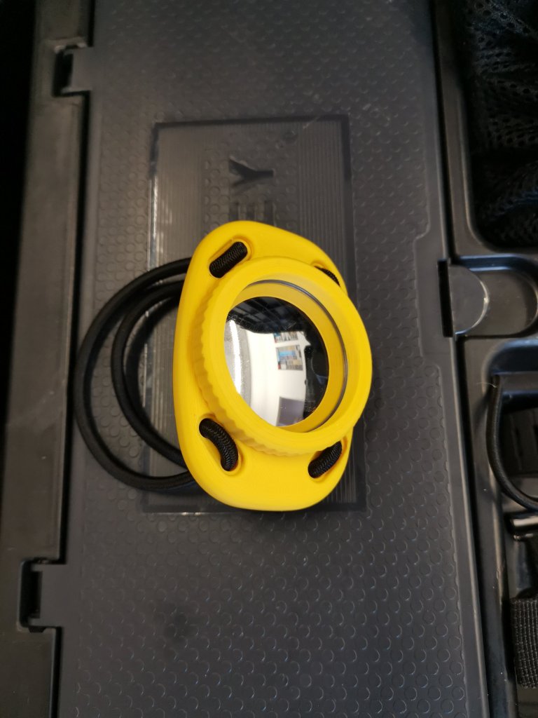 Ja ich habe den schon getestet, er verzerrt etwas so das man einen größeres Sichtfeld hat. Kommt einfach auf den Handrücken und stört nicht. Ist gerade mit doppelgerät immer mühsam sich umzudrehen. Ich bin sehr zufrieden und tauche nicht mehr ohne.