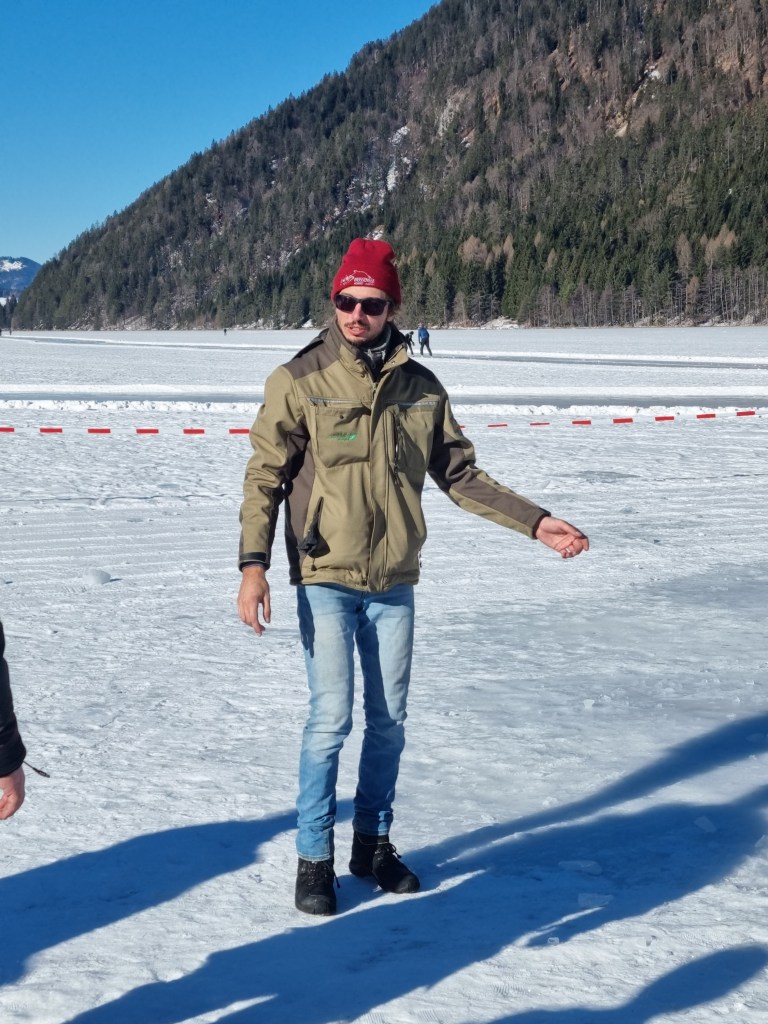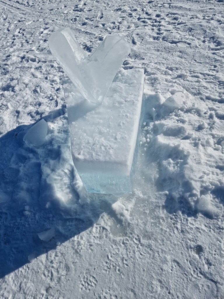 Die Eisdicke betrug ca 35 bis 40 cm und war sehr beindruckend. Ein paar Tage zuvor konnte sogar ein LKW auf dem Eis fahren, es war also mehr als sicher!