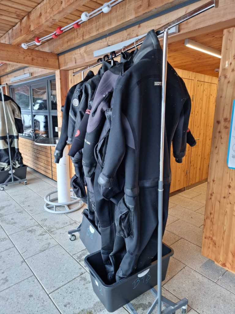 Draußen gibt es ausreichend Rödeltische und Schlitten bzw Bollerwagen zum Transport. Aber auch Sitzmöglichkeiten sowie Ständer zum trocknen des Equipments. Der Kompressor hat ordentlich dampf und füllte unsere Tanks super schnell.