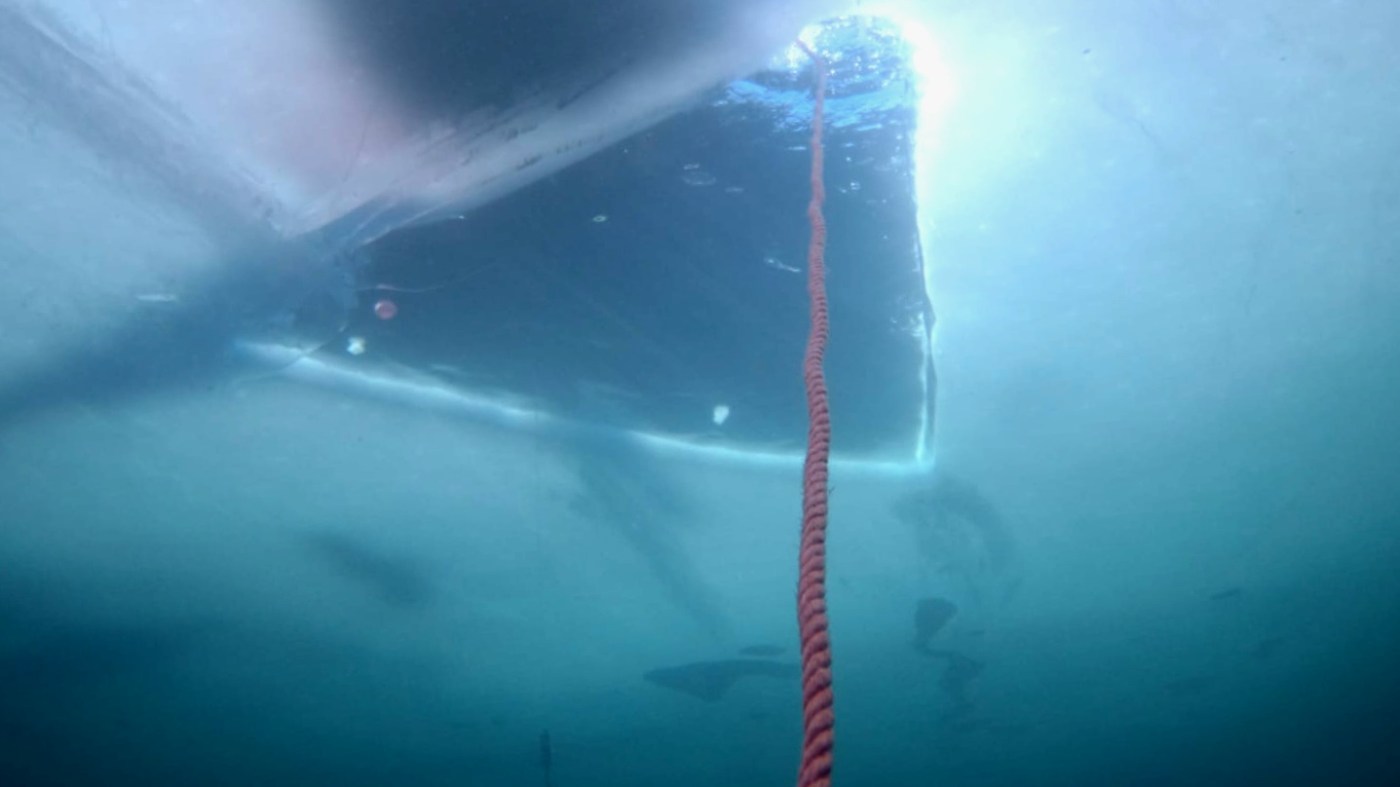 Unterwasser wartete eine bezauberne Welt aus gedämpftem Licht, dem Knacken und Krächzen des Eises sowie die gut zu erkennenden Silouhetten auf dem Eis gehender oder Schlittschuh fahrender Personen.