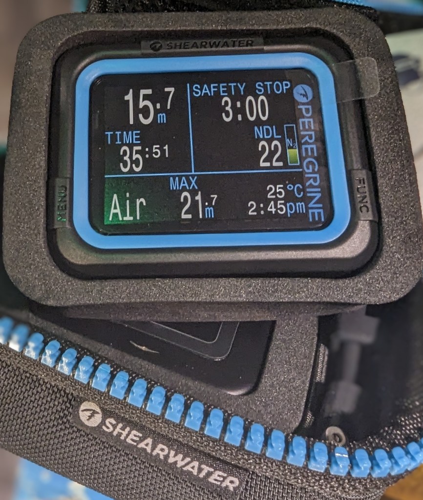 Wir haben mit einem günstigen Tauchcomputer angefangen – dem Suunto Zoop Novo. Dieser hat uns gute Dienste geleistet. Wir gehören zwar zu den „Urlaubstauchern“, aber nach 3 Jahren ist dann der Entschluss gefallen auf den Shearwater Perdix AI umzusteigen. Unsere Beweggründe waren hauptsächlich das farbige Display, die übersichtliche Anzeige und der Kompass. Letzteres ist zwar nicht zwingend notwendig gewesen, schadet aber auch nicht und gibt uns ein wenig mehr Sicherheit ;-). Auch den Tankpod haben wir gekauft und finden die direkte Anzeige auf dem Computer sehr hilfreich. Dennoch würden wir nie auf das manuelle Finimeter verzichten, denn somit haben wir immer direkt ein Backup-System :-).