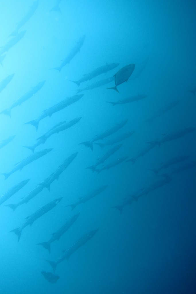 Unter Wasser wartet ein intaktes schönes Hart- und Weichkorallenriff mit massenhaft Baracudas, Kofferfischen, Muränen, Makrelen und riesigen Seepferdchen (bis zu 30 cm gross)!