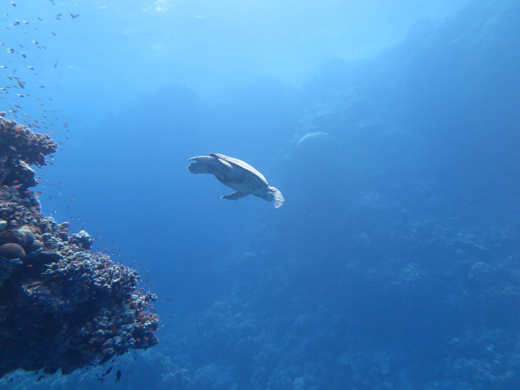 Man braucht meistens gar nicht mit den Flossen schlagen, da vor Ort eine leichte Strömung herrscht die einen in gemäßigter Geschwindigkeit an dem Spot vorantreibt.