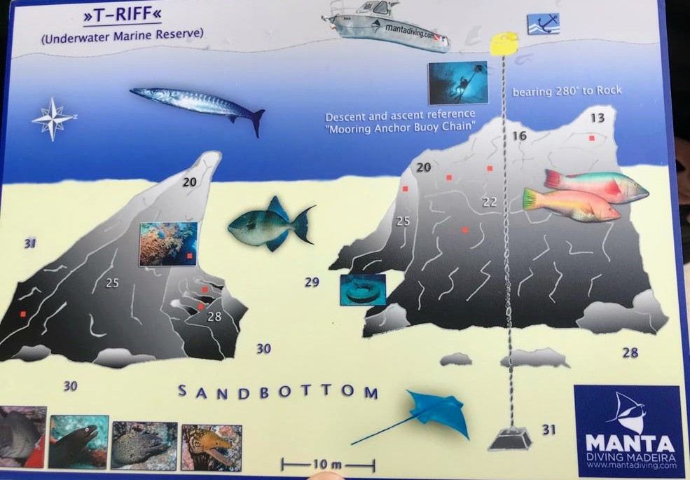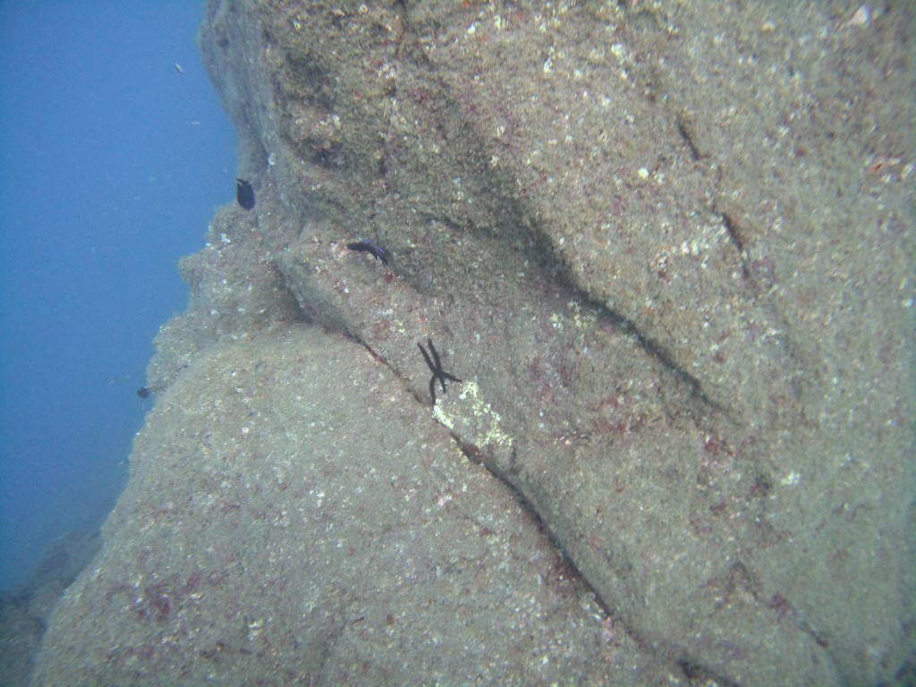 Dieser Tauchplatz ist nach gut 10 Minuten mit dem Boot von der Basis aus erreicht. Man steigt an einer festen Leine ab und landet direkt an einem der zwei Felsen, die man in der Form einer `8`aufsteigend betaucht.