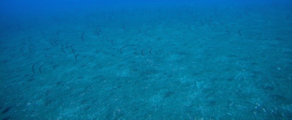 Grundsätzlich sieht man ab ca 20 Meter tiefe auf den Sandflächen immer massig Röhrenaale.