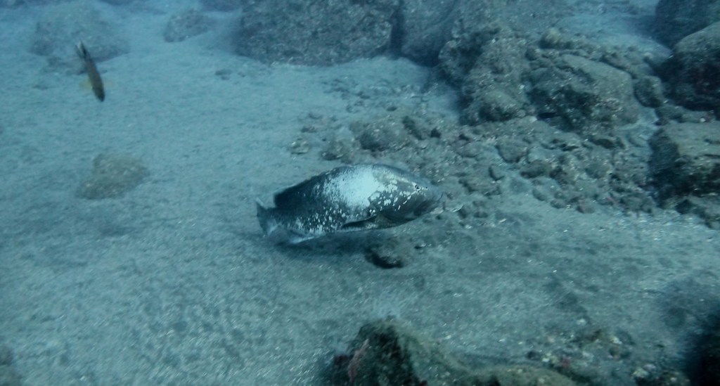 Wenn man Glück hat, entdeckt man auch eine Schildkröte, die hier öfter mal am Felsen vorbei schaut. Auf den Sandflächen um ‚Pico‘ kann man oft gut eingegrabene Rochen entdecken. Im Freiwasser sind oft Barracudas und größere Zackenbarsche finden.