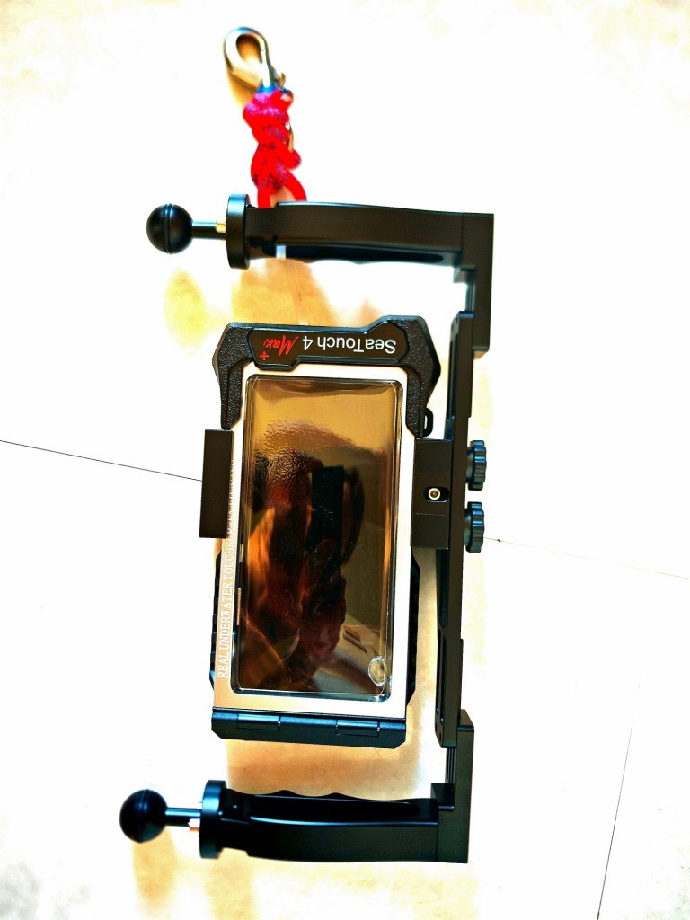 Schon beim Auspacken macht das Gehäuse für Smartphones einen Recht anständigen Eindruck. Es ist einsetzbar bis zu einer Tiefe von 60 Metern. Was die anderen Housings damit schlägt, die „nur“ bis 40 Meter Tiefe geeignet sind, was für jeden Sporttaucher vollkommen ausreichend ist.