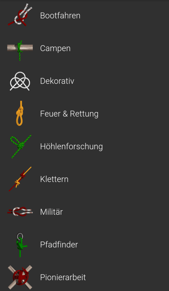 DIE APP für Knoten. So gut wie jeder Knoten (schön nach Kategorien geordnet) wird hier Schritt für Schritt erklärt bzw in einer Animation gezeigt. Die Geschwindigkeit kann hierbei eingestellt werden. Must have!