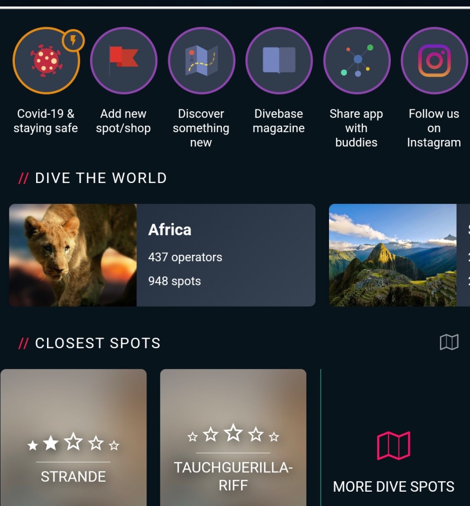 Mit dieser APP kannst du die Tauchspots, Tauchshops und auch ferne Tauchreisen in deiner Nähe finden.