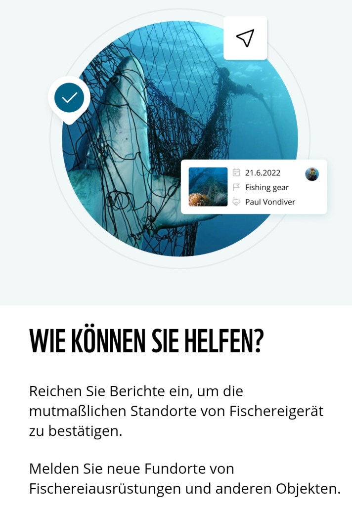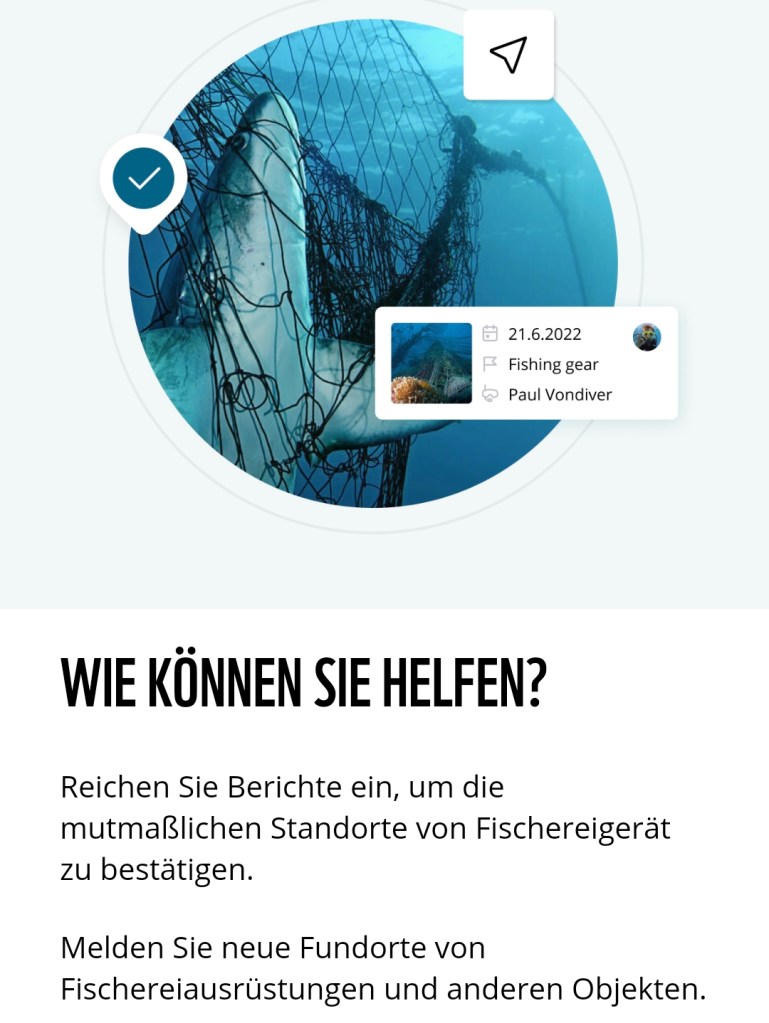 Mit dieser APP vom WWF kann man als Taucher gesichtete Geisternetze beim WWF melden, die diese dann bergen und entsprechend entsorgen.