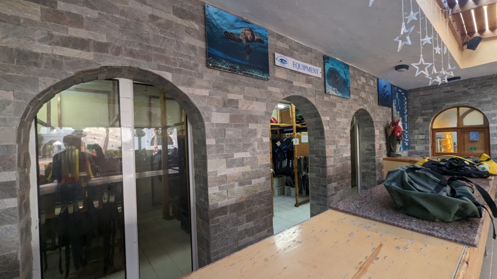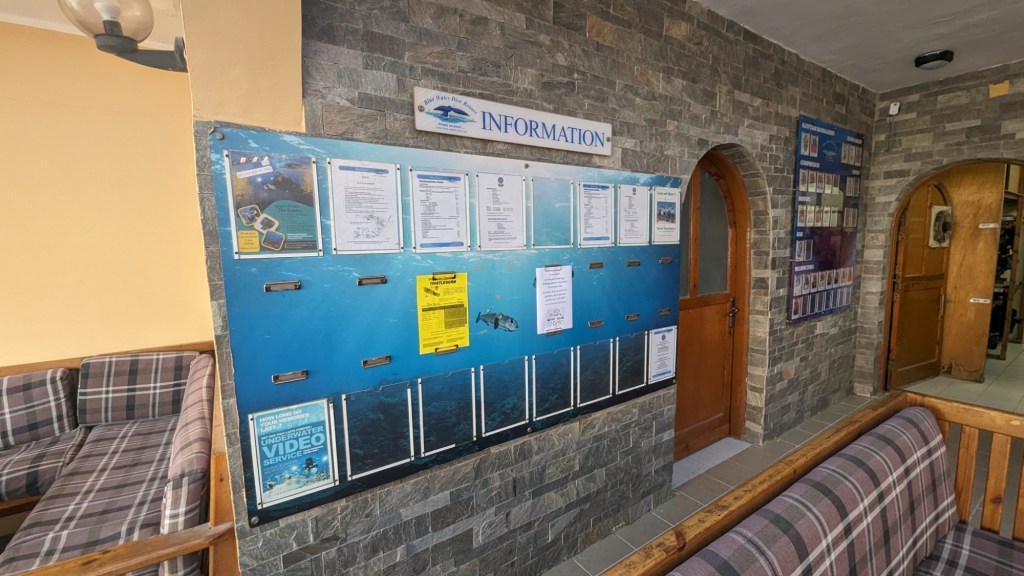 Alles wird von den Mädels im Office für euch organisiert. Immer sehr nett, höflich und mit ein bisschen Humor. Dort bekommt man im Notfall auch Erste Hilfe, wenn zum Beispiel die Ohren dicht machen, der Magen grummelt oder man Seekrank wird. Im Office findet man ebenfalls einen kleinen Shop, wo man Tauchzubehör oder kleine Souvenirs kaufen kann.
