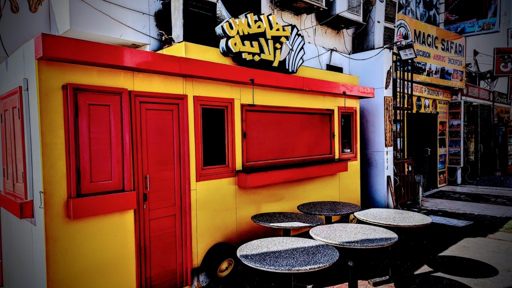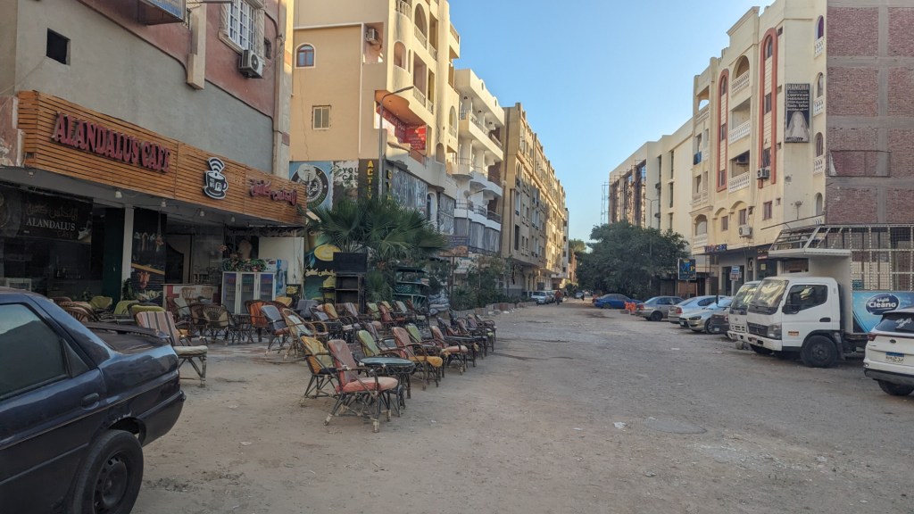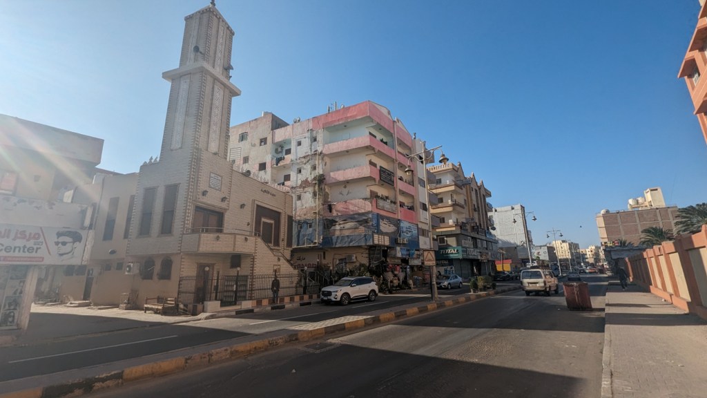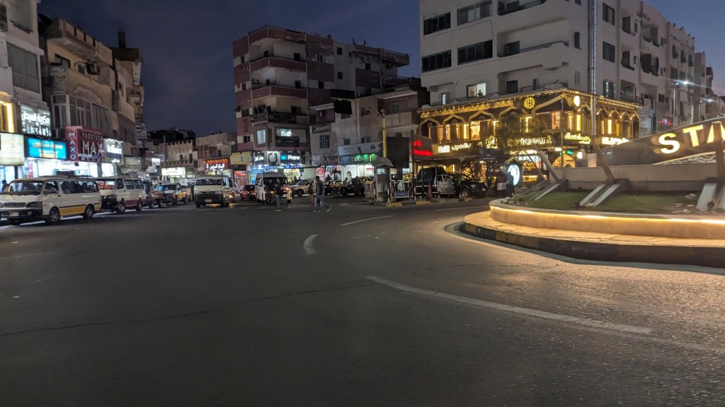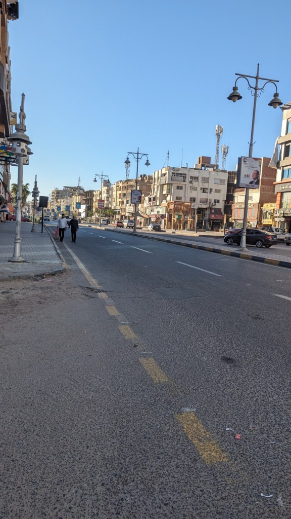 In Hurghada bin ich auch etwas zu Fuß unterwegs, tagsüber ist es sehr verschlafen abends ist die Hölle los. Der Verkehr funktioniert nach dem Prinzip Hoffnung, Glaube und Anarchie. Allerdings klappt das sehr gut. Das wichtigste ist am Auto die Hupe, deswegen werden in Ägypten die Autos auch nach Hupraum bemessen;-)