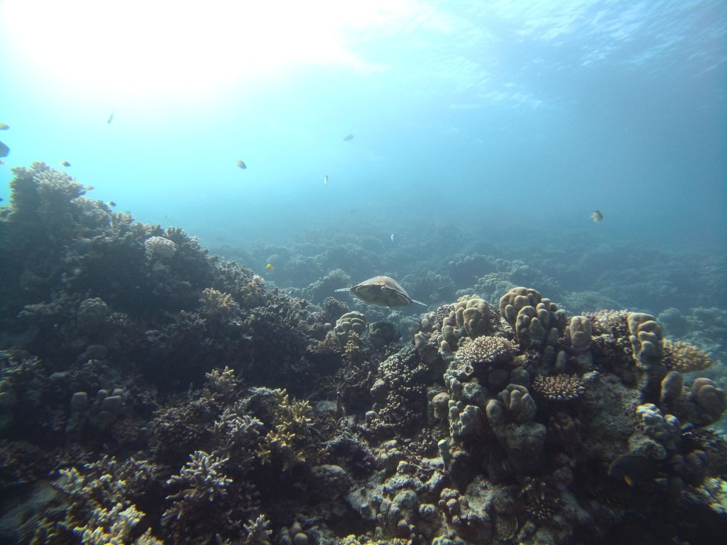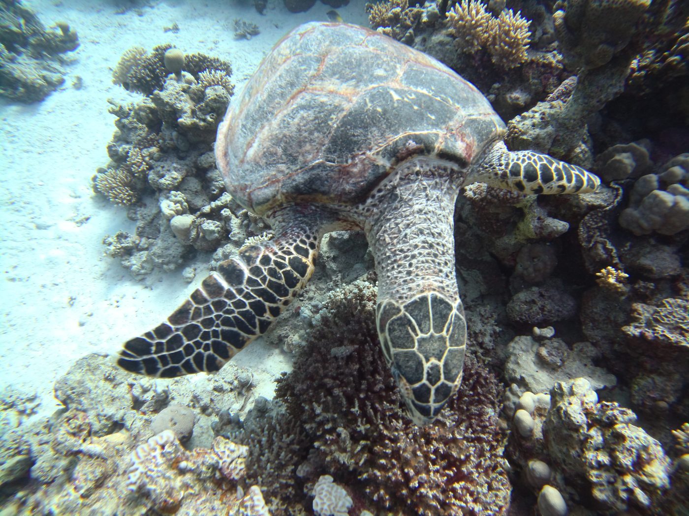 Oft findet man große Schildkröten, die sich an den Korallen Sattfressen. Im Blauwasser kann man mit Glück Großfisch wie Thunfisch oder Barracudas entdecken. Mondfische und auch Hammerheads haben die Guides dort schon gesehen. Ansonsten ist die Steilwand ordentlich mit Korallen bewachsen und in gutem Zustand.