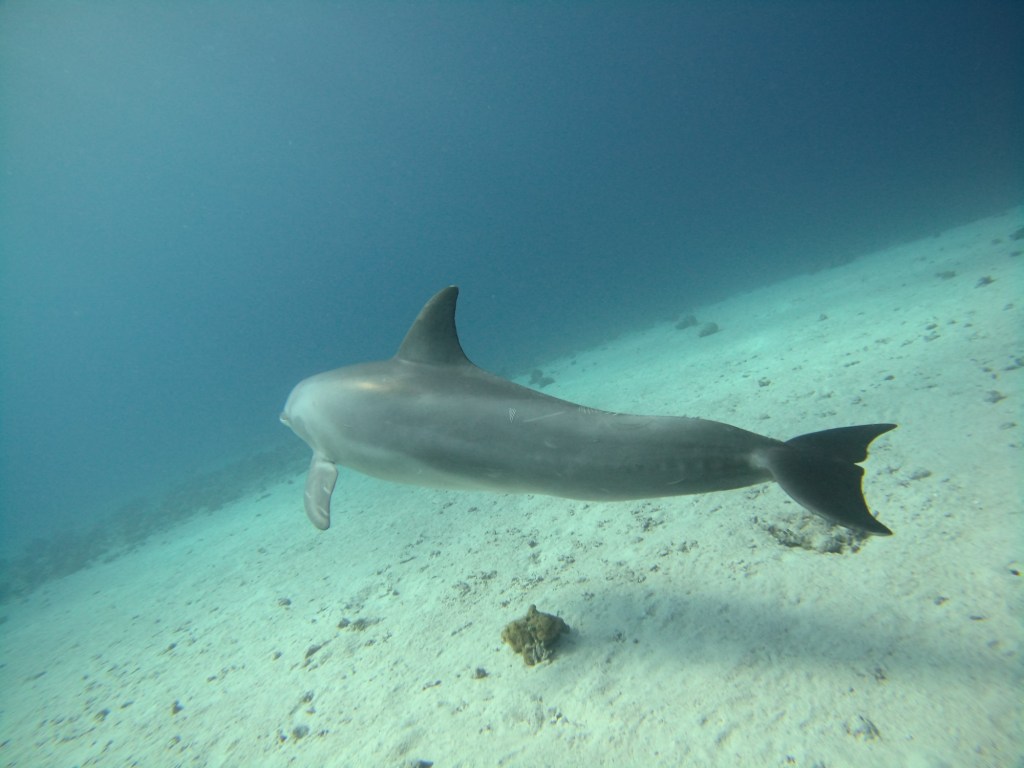 Dieser Tauchplatz ist mit 10 Meter Tiefe einer der flacheren, allerdings kann man hier mit etwas Glück Delphine sehen. Ich vermute das die Delphine hier her kommen um sich auszuruhen, da es hier immer Strömungsschatten gibt.