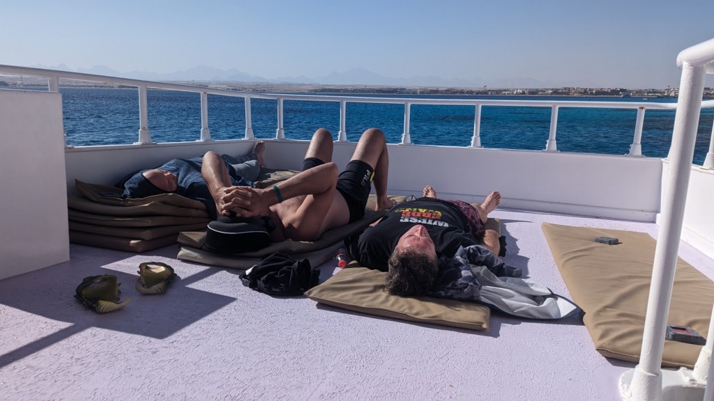 Alles hat immer hervorragend geschmeckt, vor allem die Falafel 🧆 waren unfassbar lecker. Zum Essen muss man sich immer morgens beim Briefing anmelden und extra beim Kapitän dafür bezahlen. Wenn man Frühstück braucht, muss die Anmeldung dazu einen Tag vorher geschehen.