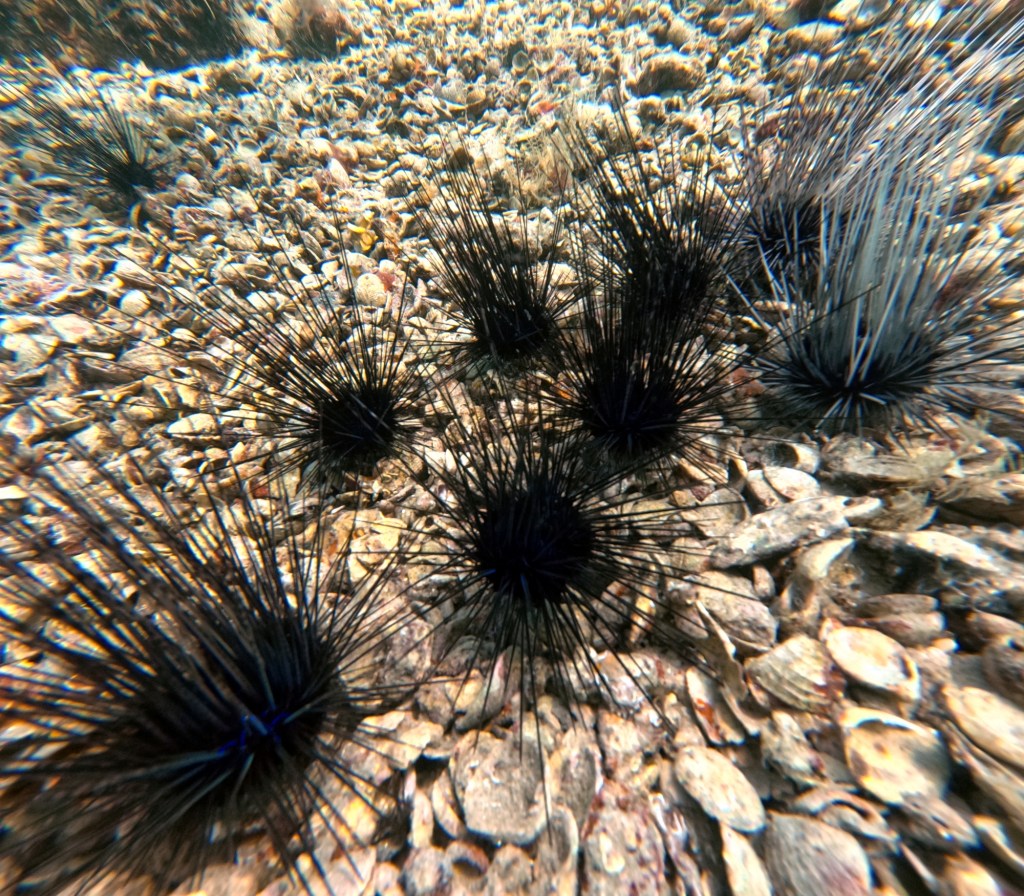 Leider gab es einen Tod bringenden Virus, der die Seeigel Population teilweise bis zu 80% dezimiert hat. Wie immer kommt es durch den fast völligen Wegfall einer Spezie zu weitreichenden Folgen.