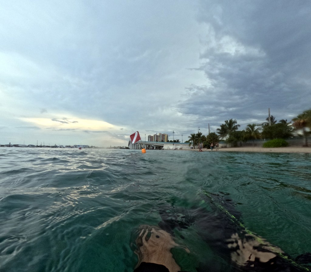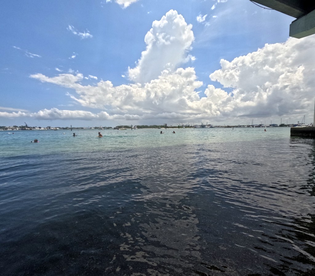 Die ersten Tage nach dem Hurricane war die Sicht nicht so super und es gab noch massiv Strömung. Dann wurde die Brücke noch gesperrt, da im Hafen ein Rohr eine Leckage hatte.