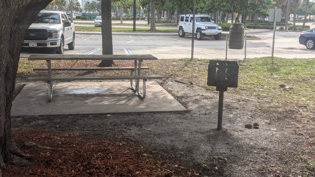 Ich war immer viel zu früh vor Ort, aber im kleinen angrenzenden Park konnte ich mir so immer was zu essen machen. Dafür gibt es in jedem Park in Florida öffentliche Grills und kleine überdachte Hütten. Super praktisch.