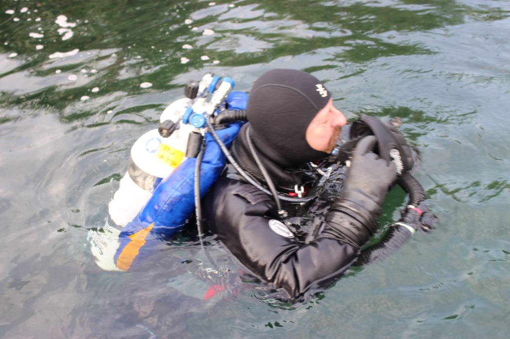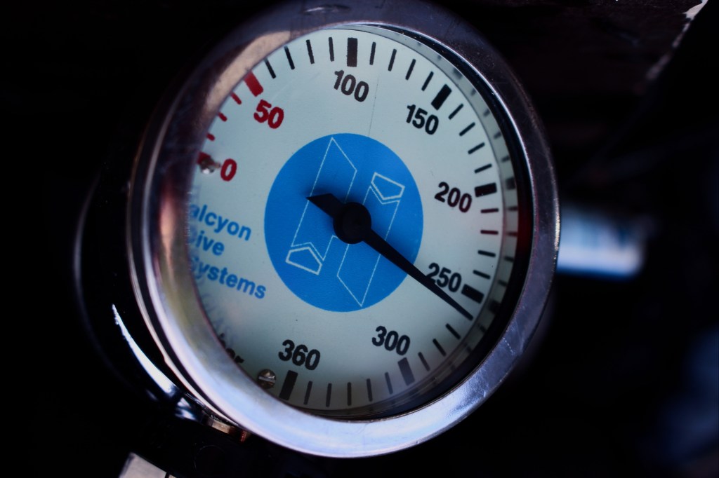 Denn tarieren mit der Lunge wie beim Tauchen beim offenem Kreislauf geht beim geschlossenen Kreislauf des Rebreathers nicht, da dieser eine Gegenlunge hat. Also muss man wieder mit dem BCD bzw. -so riet es mir John – über den Trocken-Tauchanzug tarieren. ABER: Man muss das sehr behutsam machen, ansonsten geht es nur auf und ab. Das wiederum bedeutet Stress und das Ganze wird umso schlimmer.