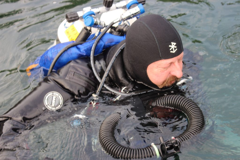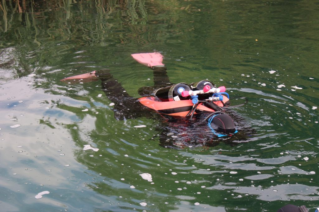 Ich war ziemlich beruhigt, denn ich bin noch nie zuvor Rebreather getaucht. Ich tauche ja immer noch im Offenem System (OC), das bedeutet, dass mein ausgeatmetes Atemgas direkt ins Wasser abgegeben wird, was man durch die aufsteigenden Blasen sehen kann.