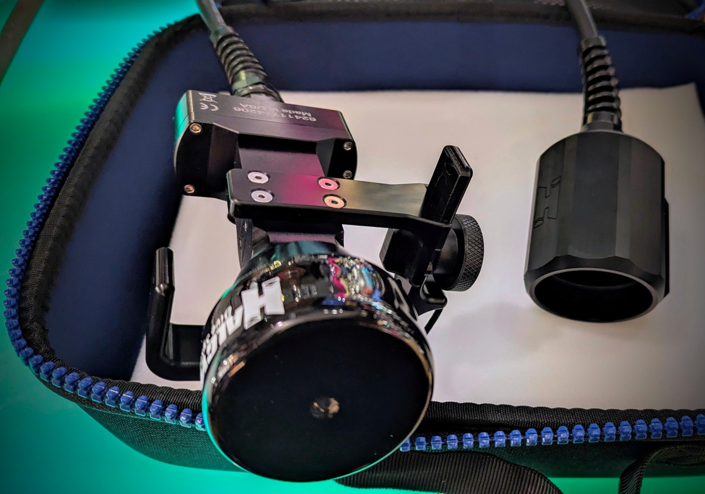 Im Lieferumfang ist natürlich die Lampe selbst, mit dem fest verbunden Akkutank und ein Ladegerät. Desweiteren ist noch ein Goodman Handle dabei. Dieser ist für Rechts- sowie Linkshänder geeignet und in Höhe und Breite einstellbar. Befestigungspunkte für Boltsnaps sind beidseitig vorhanden!