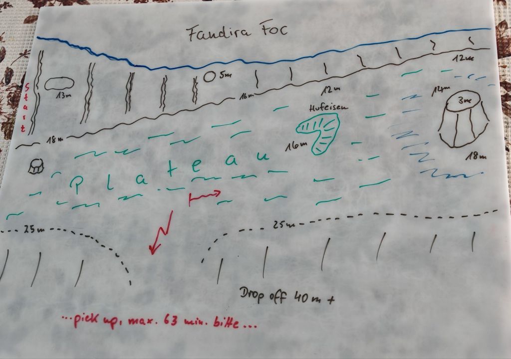 Man kann hier auch zwei Höhlen antauchen, mit Glück findet sich hier Großfisch. Die Tiefe von 20 Metern wird hier nicht überschritten, somit reicht das Atemgas für mindestens 60 Minuten.