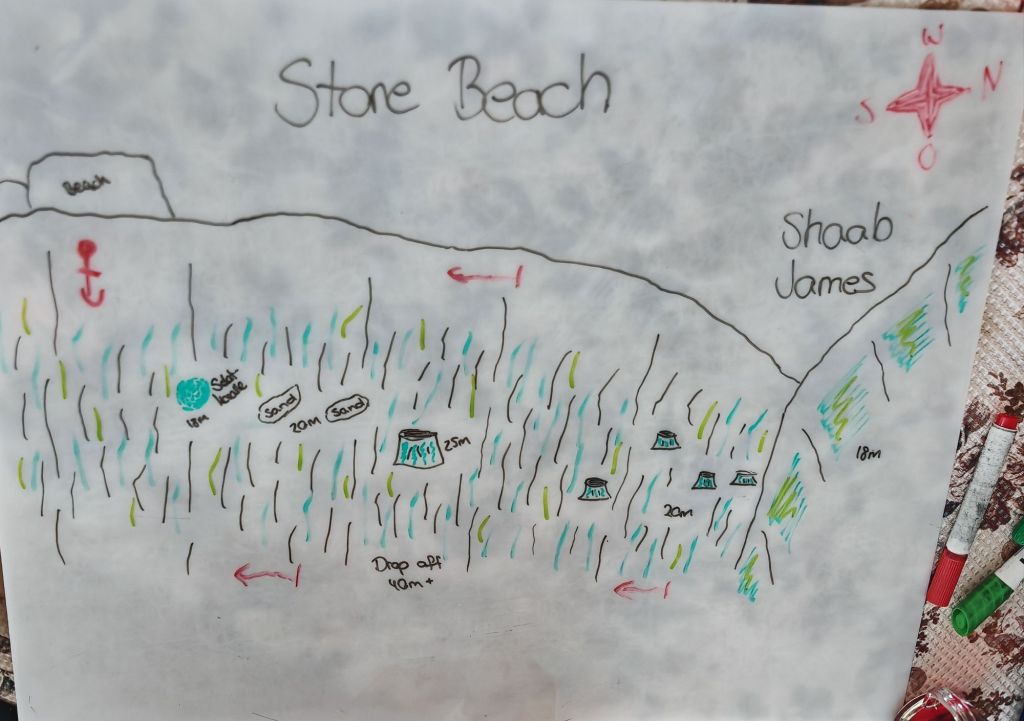 Hier gibt’s es mit Glück zwei Tauchplätze in einem. Wenn die Strömung nicht zu stark ist wird ab Sha’ab James getaucht, der dann nahtlos in Stone Beach übergeht.