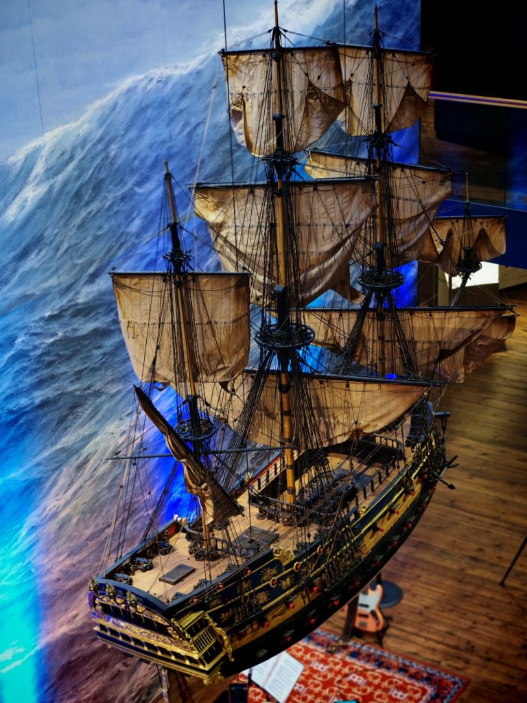 Auf dem Deck 7 schließlich wird der Traum vom Schiffbau lebendig. In der „Schatzkammer“ glitzern historische Schiffsmodelle, manche so filigran, dass man sich fragt, wie Menschenhände so etwas vollbringen konnten.