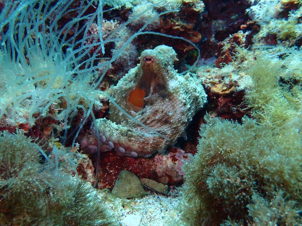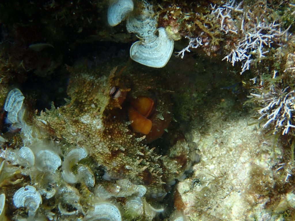 We saw octopods, goldfish, lots of young fish, bream, snails, stonefish, groupers, and much more.