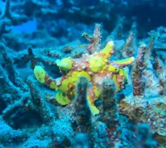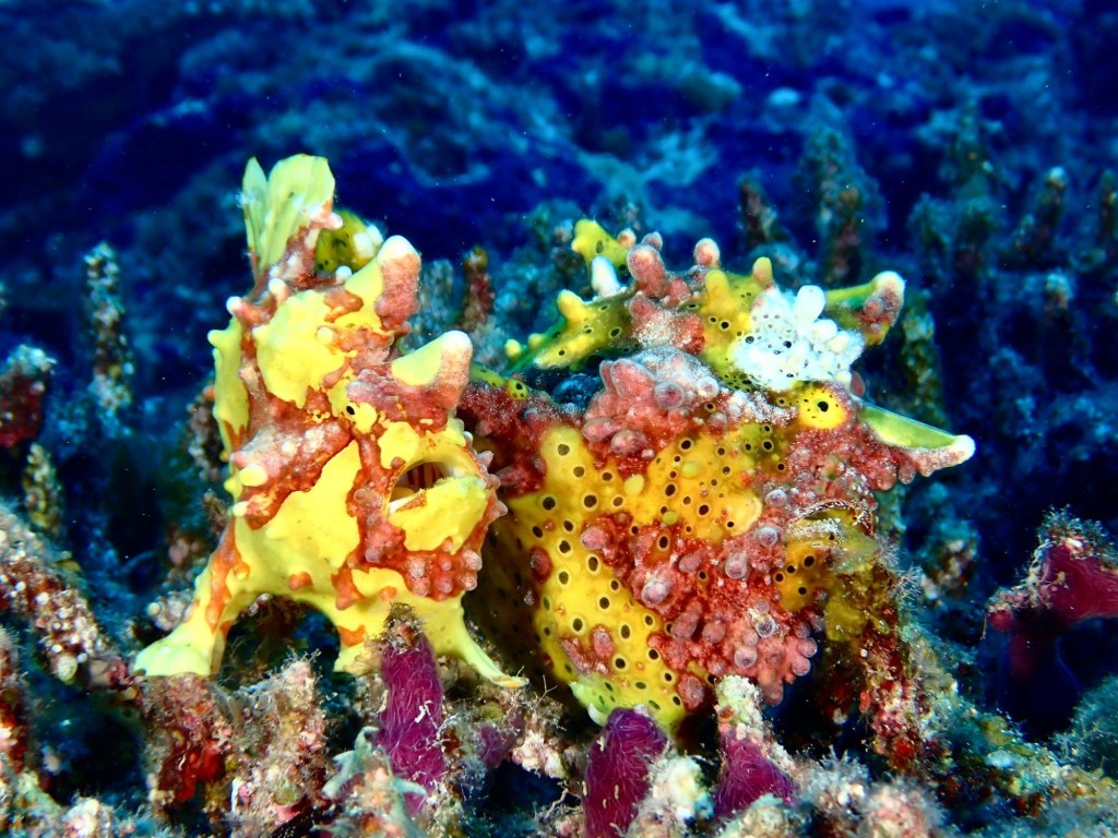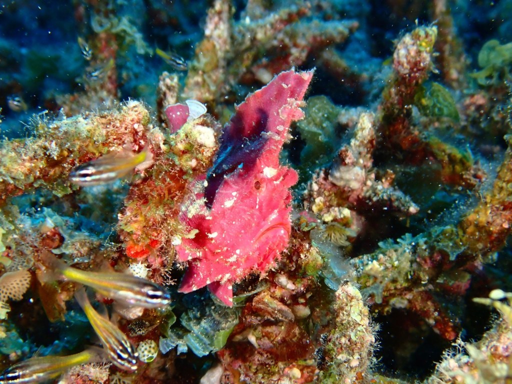 Anglerfische, winzige Rotfeuerfische, Baby Frogfish, Meeresschildkröten,Seewespen, Leaf Stonefish aber auch Seepferdchen sind hier zu finden. Ebenso wie die Gespensterkrabbe und natürlich deren Nachbarn den Anemonenfischen.
