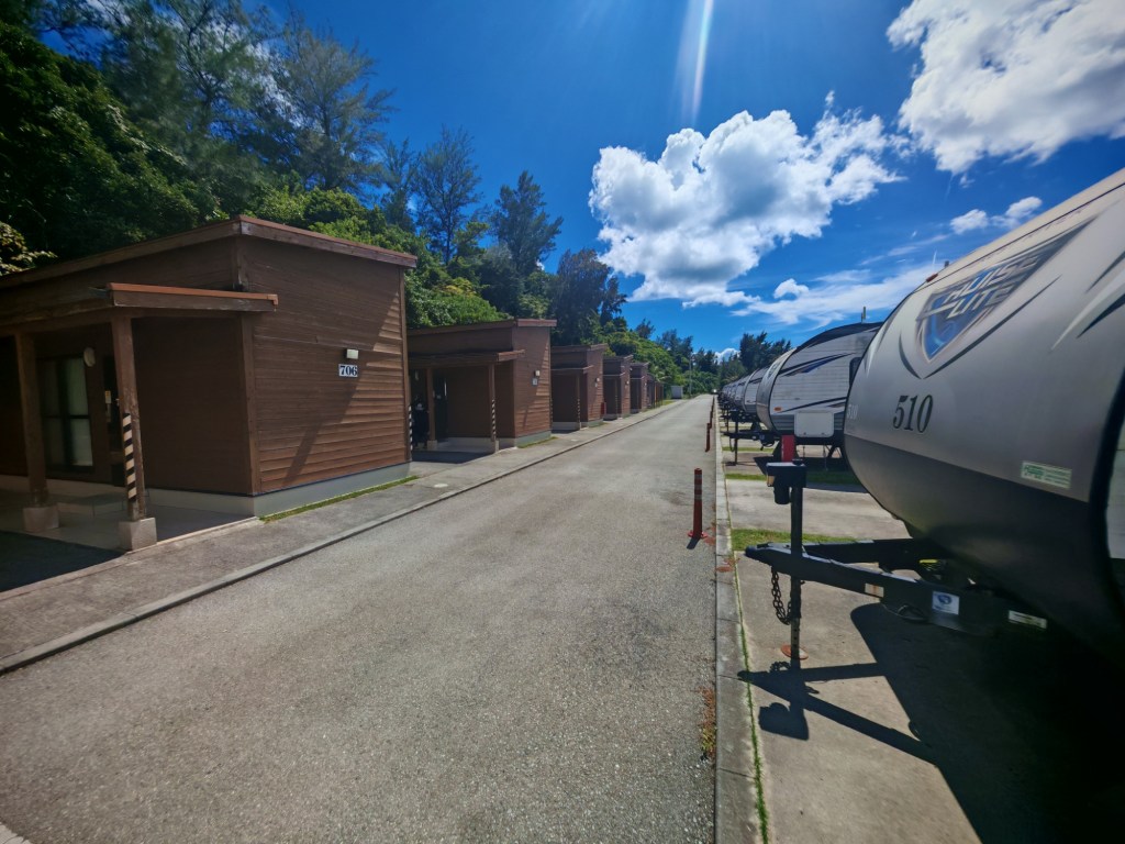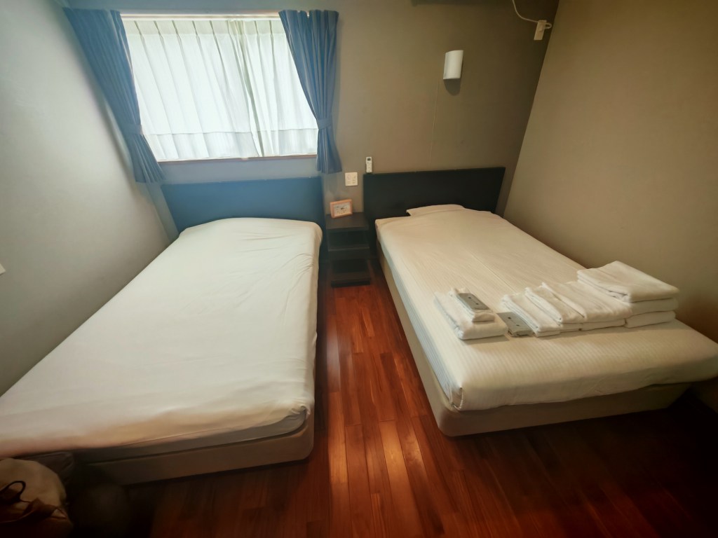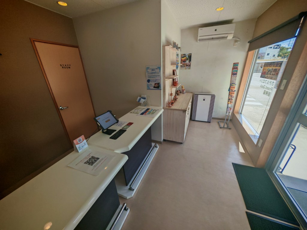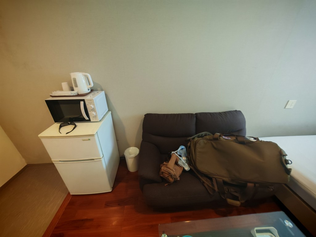 The last place I stayed in Okinawa was the Beach Resort Hotel Kalakaua. Checking in was just as easy and exactly the same as in chatan where you have to use an iPad to enter your personal details and booking number and take a photo of your passport. This is followed by a short video call, after which you receive a code for the key safe, which you then use to access your room. The furnishings are simple, basic but functional and it is very clean and quiet. You can park your car directly in front of the hotel room. Personally, I would describe it more as a motel. The room has its own bathroom with shower, toilet and a bathtub. In the room itself you also have a microwave, a fridge and a kettle. Of course there is also the obligatory air conditioning.