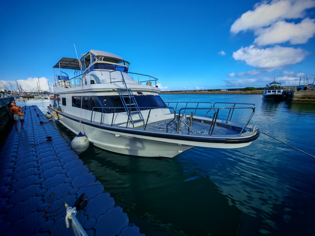 Das Tauchen in Japan ist anders als überall wo ich bisher war. Hier ist es so, dass die Tauchschulen sich bei einem Captain Slots kaufen für ihre Kunden und diese dann natürlich möglichst voll bekommen müssen damit der Gewinn größer ist. Allerdings ist es auch kein Problem diese Slots untereinander zu tauschen was hier auch gerne gemacht wird. So ist es oft so, das 4 bis 5 Tauchschulen auf einem Boot sind.