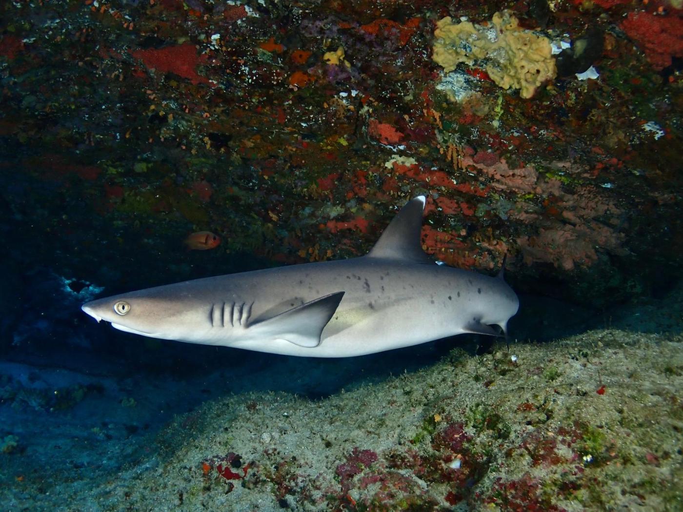 To start with, there were a few schools of various fish and then it all happened in quick succession. Snails, a beautiful whitetip reef shark, tuna, mackerel and a few more snails. I had imagined it to be something like this. The time passed extremely quickly due to the variety of species, but my dive computer said: 60 minutes dive time. This is also where I destroyed my GoPro selfie stick, which turned out to be a blessing. This meant I had to use the Divevolk housing.