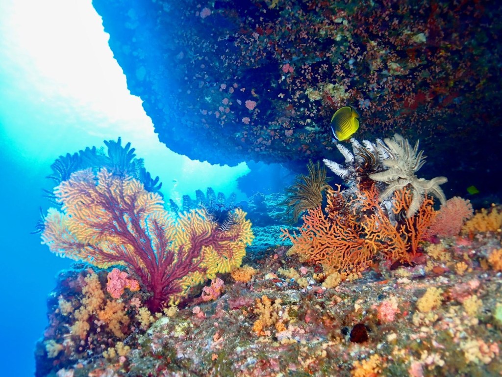 An diesem Spot war von Korallenbleiche nichts zu sehen und es gab jede Menge Seelilien in diversen Farben zu bestaunen. Ein wirklich wundervoller Tauchplatz. Besser hätte der erste Tauchtag nicht beginnen können!